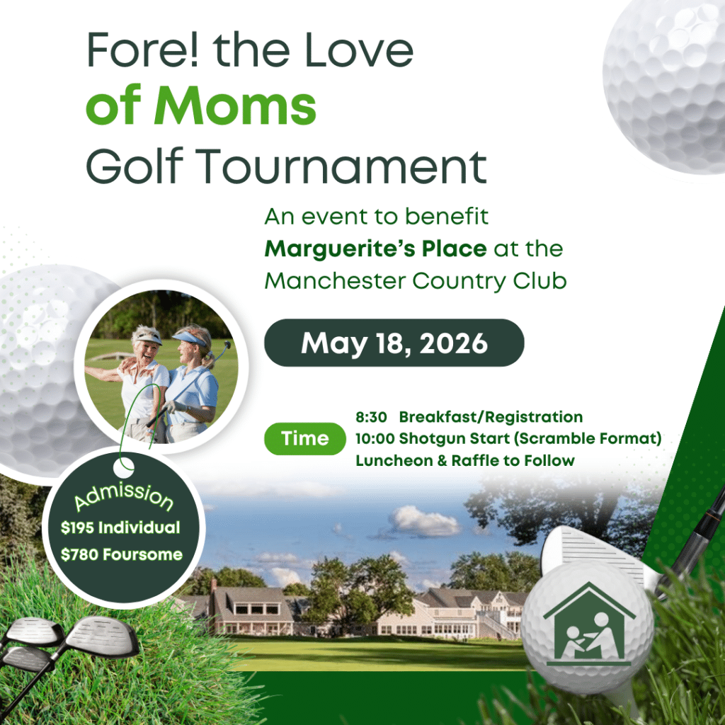 Join us on Monday, May 18, 2026 at 8:30 AM, for our golf tournament, Fore! the Love of Moms, a Benefit supporting Marguerite’s Place.