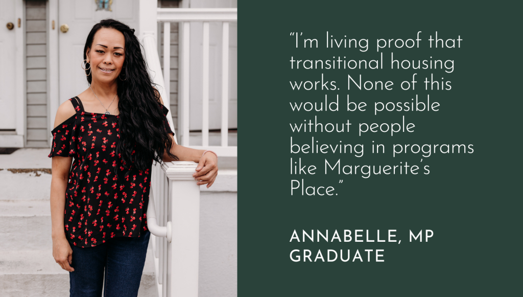 “I’m living proof that transitional housing works,” Annabelle shares. “None of this would be possible without people believing in programs like Marguerite’s Place.”